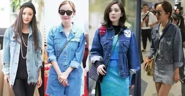 ► 其实这个季节,有些地方早晚还会有点凉,这个时候,你只需要一件最时髦的牛仔外套就可以搞定,娱乐圈明星高圆圆杨幂都爱这样穿哦。