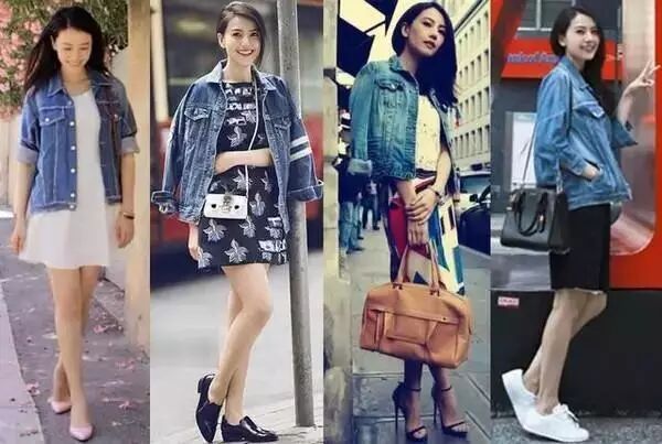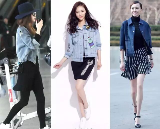 高圆圆穿牛仔外套内搭黑色连衣裙、小白裙和高跟鞋、小白鞋,知性而富有女人味。或者这件穿半身裙,搭双运动鞋或一字凉鞋,也会很性感哦。