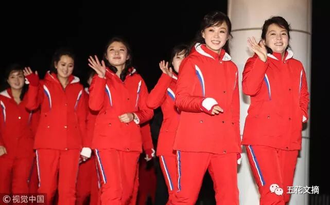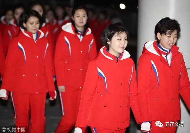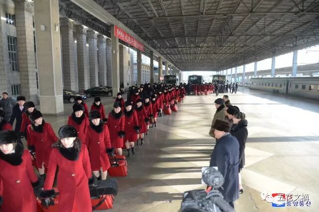 2月8日,拉拉队换上精心准备的行头,正装参加朝鲜体育代表团的冬奥村入村仪式,队服异常抢眼。