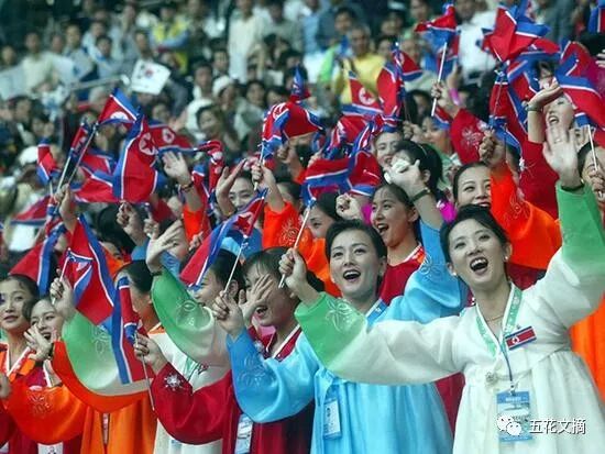 这是朝鲜拉拉队在亚运会上统一喊口号