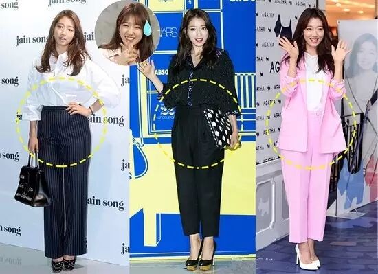 虽然朴信惠瘦了不少,但是臀宽的妹子一定要记得,完全暴露缺点的水手裤、哈伦裤并不是明智的选择。