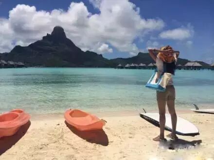 传说中,大溪地的波拉波拉岛拥有“一千种”蓝色的海水, 每次眺望辽阔海洋,都能看到不同层次的海蓝。大溪地的海水清澈见底,鱼儿们就在你身边游来游去,据说是"地球上距离天堂最接近的地方"!