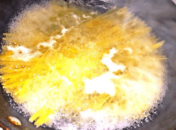 锅内添水,水开后下意大利面,水量根据面的多少,下面前要在锅内加少许盐与油,将面煮至7-8成熟,捞出控水待用