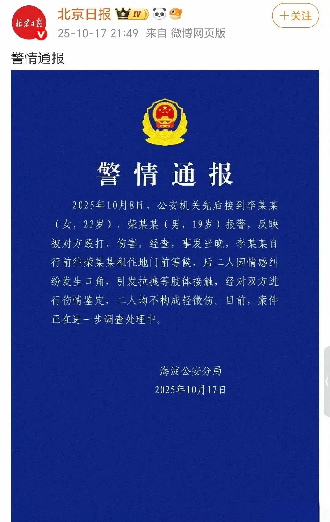 当警方通报确认“二人因情感纠纷发生口角,引发拉拽等肢体接触”时,这场争议已超越了八卦范畴,成为一起关乎青少年成长与教育的典型案例。