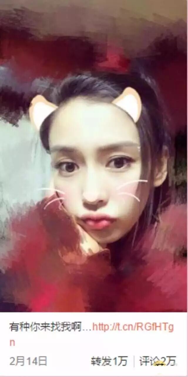 Angelababy上次在微博发自拍,并对粉丝说“有种来找我啊”,