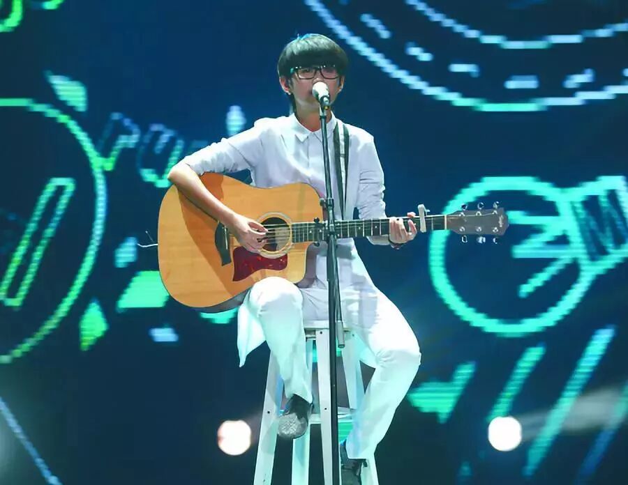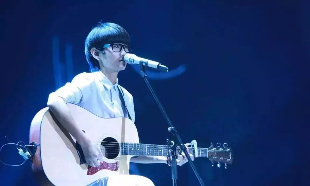 那个留着蘑菇头、有着标志性小虎牙、戴着大黑框眼镜的妹子,萌萌的话不多,抱着一把吉他在灯光下安静唱歌。