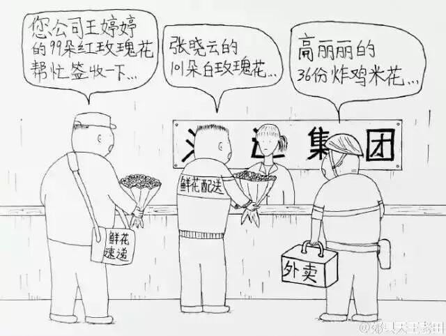 再借用下@郊县天王老田的漫画告诉各位老公们,虽然结了婚,各种节礼物还是一定要送的呀!没有钻戒玫瑰花,就算是36份炸鸡米花也是要有的呀!