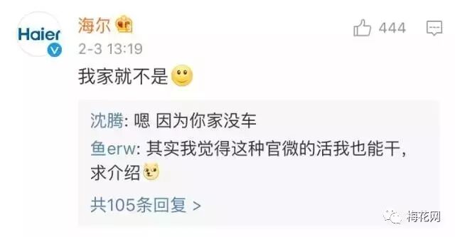 看完,以上内容梅小花简直大开眼界啊,好奇的梅小花也迅速联系到了@海尔官微团队,@海尔官方”微博小编”@海尔君及@海尔新媒体总监沈方俊一起接受了梅小花了采访,来,一起来听听他们的任性日常!