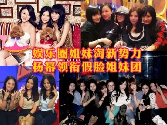 娱乐圈的姐妹淘有两大势力,一个是天后领衔的“六年一班”、一个是大小S领衔的七仙女姐妹淘,最近还有一个姐妹团正在蹿红,就是由爆红的杨幂为首的人称“假脸姐妹团”的小团体,这个团体包括了杨幂、李小璐、秦岚、熊乃瑾、霍思燕、甘薇和肖雨雨七人。