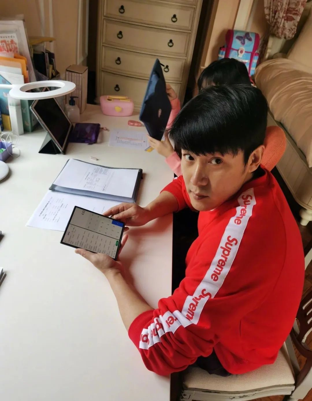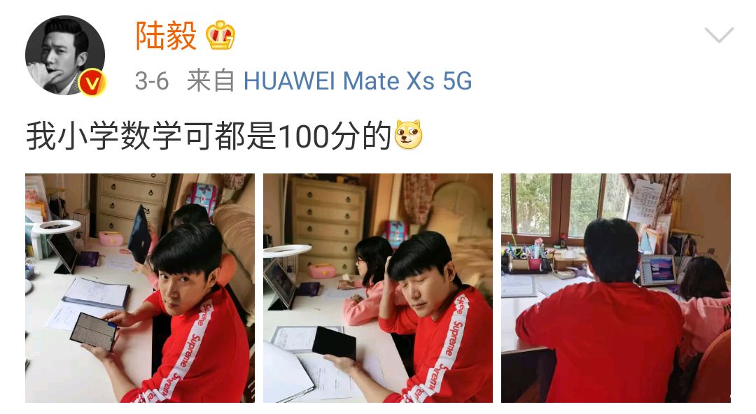 近日陆毅在个人平台上分享了一组居家照,照片中陆毅正在辅导贝儿的作业,看着陆毅无奈的表情,想必也是被网课逼疯的“老父亲”吧!正在大家要感同身受的时候,陆毅的折叠屏手机却意外抢镜,网友称:这款手机十分难抢。据悉陆毅手中的款式是在3.5号刚刚发售的款式售价16999元,一开售就被一扫而光,现在甚至被爆出炒到10万的价格,不少网友感叹陆毅真的够富!
