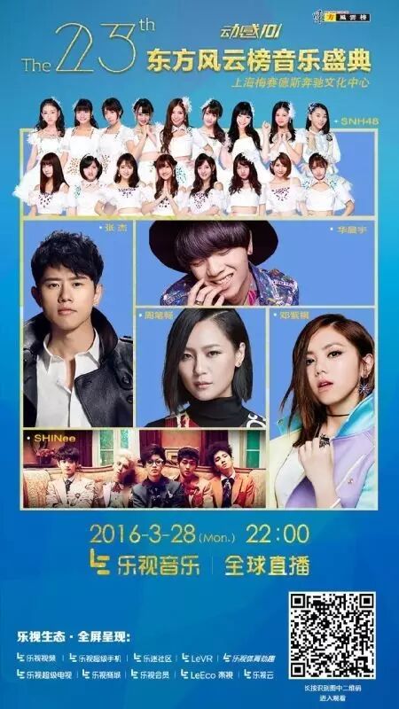 晚间19点30分,动感101将和全国30多家卫星广播协作网共同广播直播音乐盛典。当晚22点,东方卫视与乐视全平台将播出音乐盛典全程盛况。