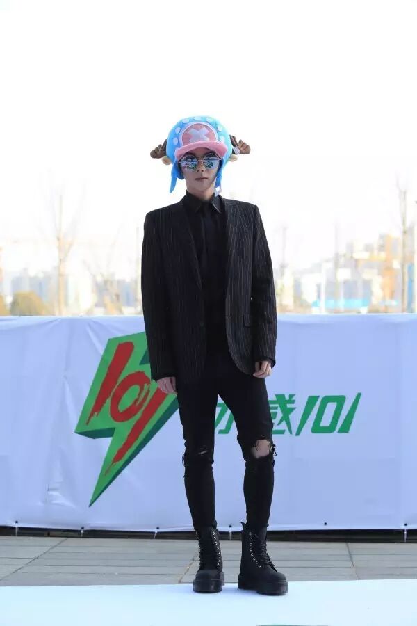 一身黑色条纹西装的花花也没有忘了给自己的造型加上帽子的亮点——人形乔巴简直萌萌哒!