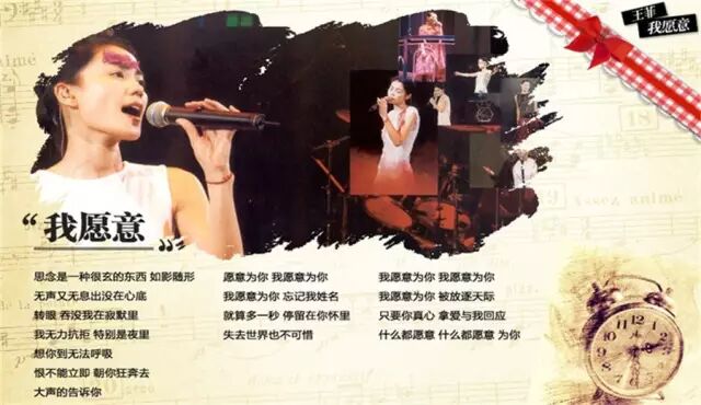 从来没有一首歌曲能让我如此完整地记得歌词,王菲的《我愿意》早些年曾经是我在KTV里必点的曲目之一,记得有一次点唱时,同事惊呼:王菲的歌,哪是人唱的?!很喜欢模仿王菲唱这首歌的语调,浅唱低吟又深情款款,尤其管弦乐伴奏更加张显那悠扬抒情的旋律,触动心弦……