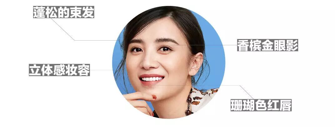 为了打造阳光健康的立体感妆容,小伊的化妆师团队选择以弱化的香槟金眼影来突出眉部的存在感,同时盈润的透明质感肌肤透出隐隐的光泽,面部高光和侧影的处理使轮廓更加立体。柔和的珊瑚红唇色和蓬松的束发流露出不羁的优雅感。