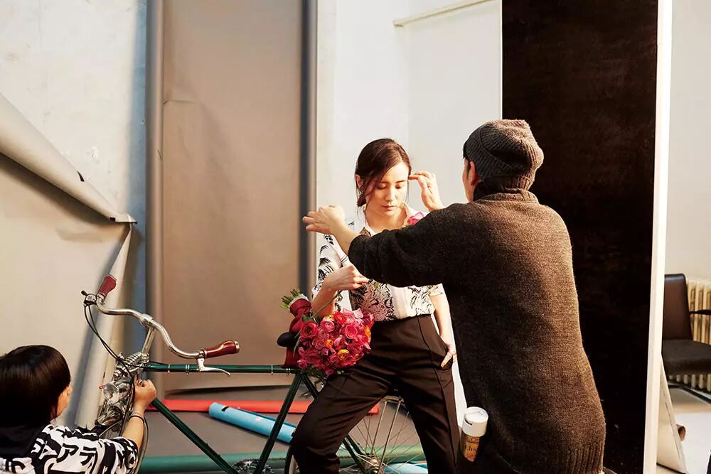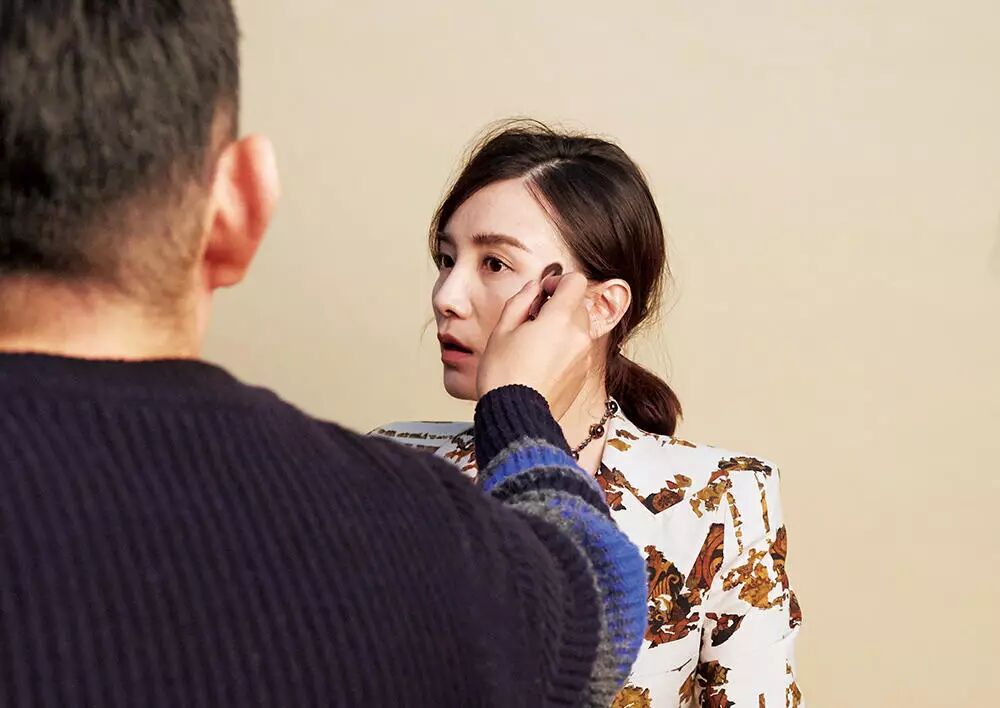 现场的拍摄节奏就是这样快,抓住一切拍摄的间隙补妆。这样才能拍出一张完美的封面呀!
