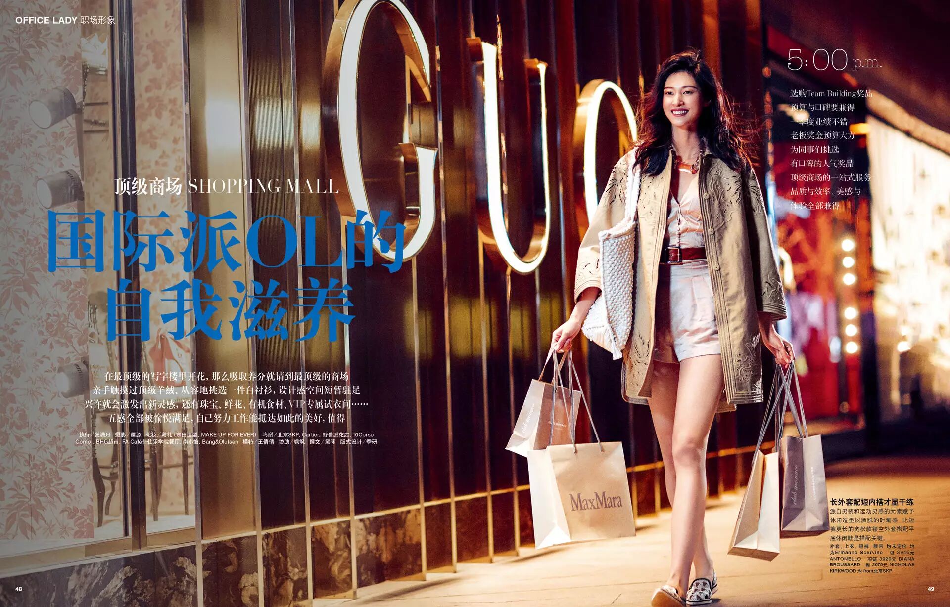 在最顶级的写字楼里开花,那么吸取养分就请到最顶级的商场。亲手触摸过顶级羊绒、从容地挑选一件白衬衫,设计感空间短暂驻足,兴许就会激发出新灵感,还有珠宝、鲜花、有机食材、VIP专属试衣间……五感全部被愉悦满足,自己努力工作能抵达如此的美好,值得!