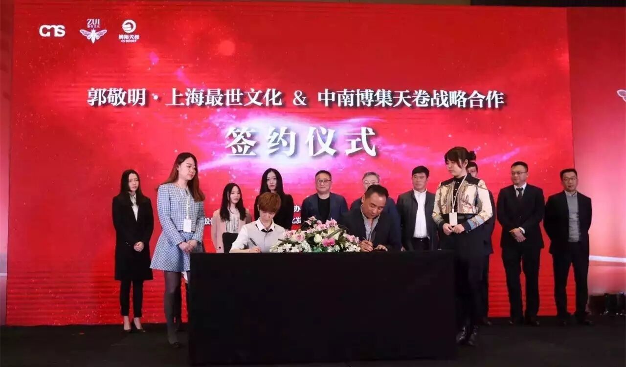 看图说话:郭敬明和我们签约辣!嗯!就酱!