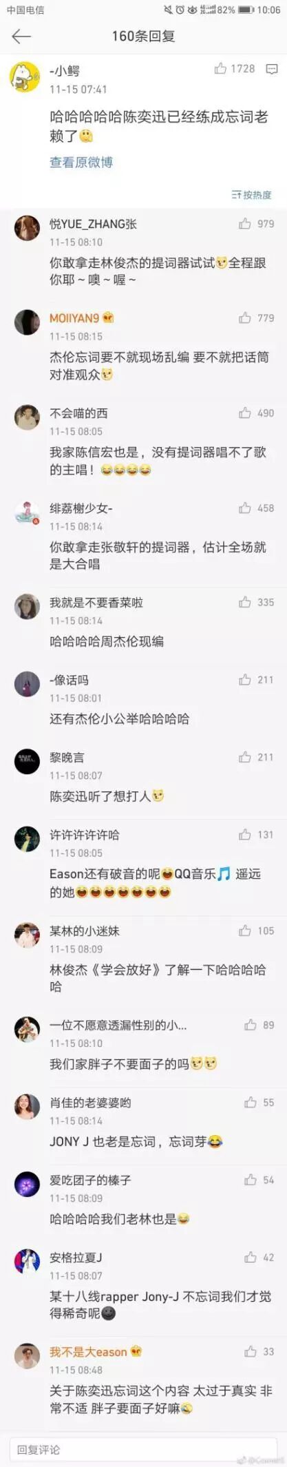 不过这件事最亮的还是别家粉丝的评论:“陈奕迅已经练成忘词老赖了。”