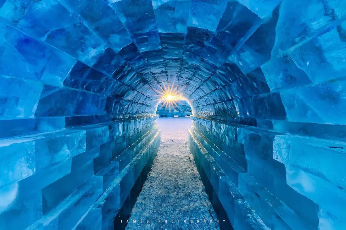 在第二次去冰雪大世界就主动找寻阳光和冰块交互,没有入夜的冰雪大世界人也少了很多,也许日常机位也有机会拍出精彩!等待光线正好从缝隙射入形成星芒的瞬间。