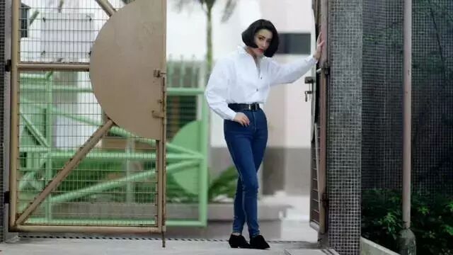 想要把牛仔裤穿的很有味道,还是得选择高腰款式,腿长立显。