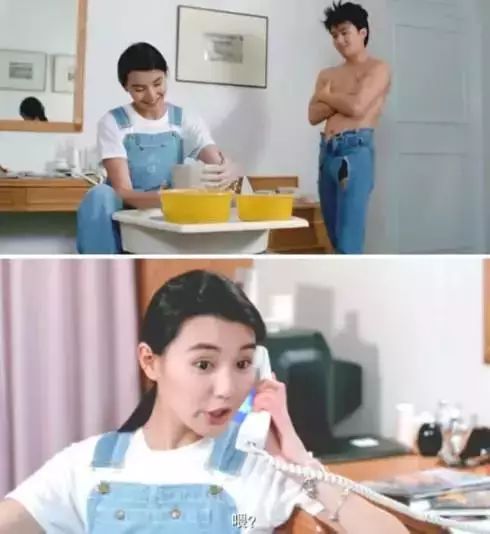 牛仔背带裤在电影中的出镜率也是极高,张曼玉出演的《家有喜事》,白T+背带裤,纯真的像个孩子。