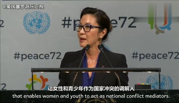 前不久,在纽约联合国总部举行的和平建设与持久和平高级别会议上,杨紫琼(Michelle Yeoh)身为联合国开发计划署亲善大使,登台发表了长达九分多钟的英文演讲,全程脱稿。下面我们就来看一下女神的演讲吧——