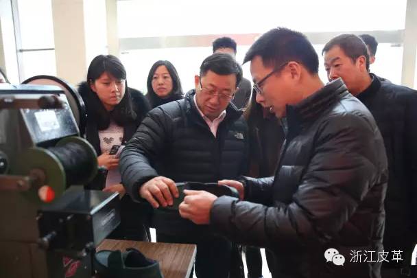 张会长一行还兴致勃勃地参观了康奈生产车间和产品展示厅。在划裁料车间,张会长为康奈“机器换人”所取得的成绩点赞。