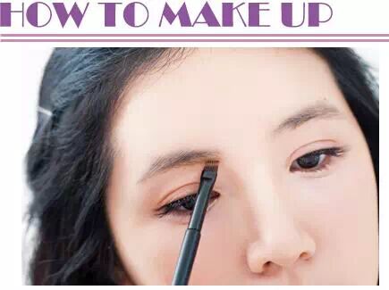 用平刷沾眉粉大范围补满空隙,眉毛较浓密的人可以用圆刷,利用松松的刷毛沾粉才不会一刷就颜色过重。