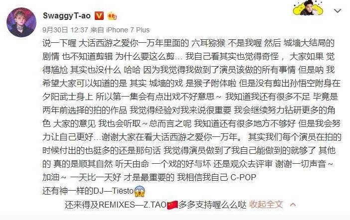 以至于黄子韬自己在微博上澄清,那只六耳猕猴不是自己扮演的。