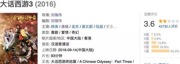 去年刘镇伟拍了《大话西游3》,豆瓣3.6分,相较于大话西游以往的水平可以说是非常差了。