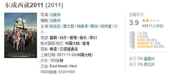 2011年的《东成西就》也是西游系列,豆瓣3.9分。
