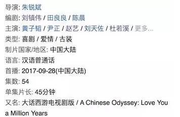 当时所有人的脸上都呈现解脱的状态,但是现在我们又看到了一部剧版的《大话西游》,名字叫《大话西游之爱你一万年》。