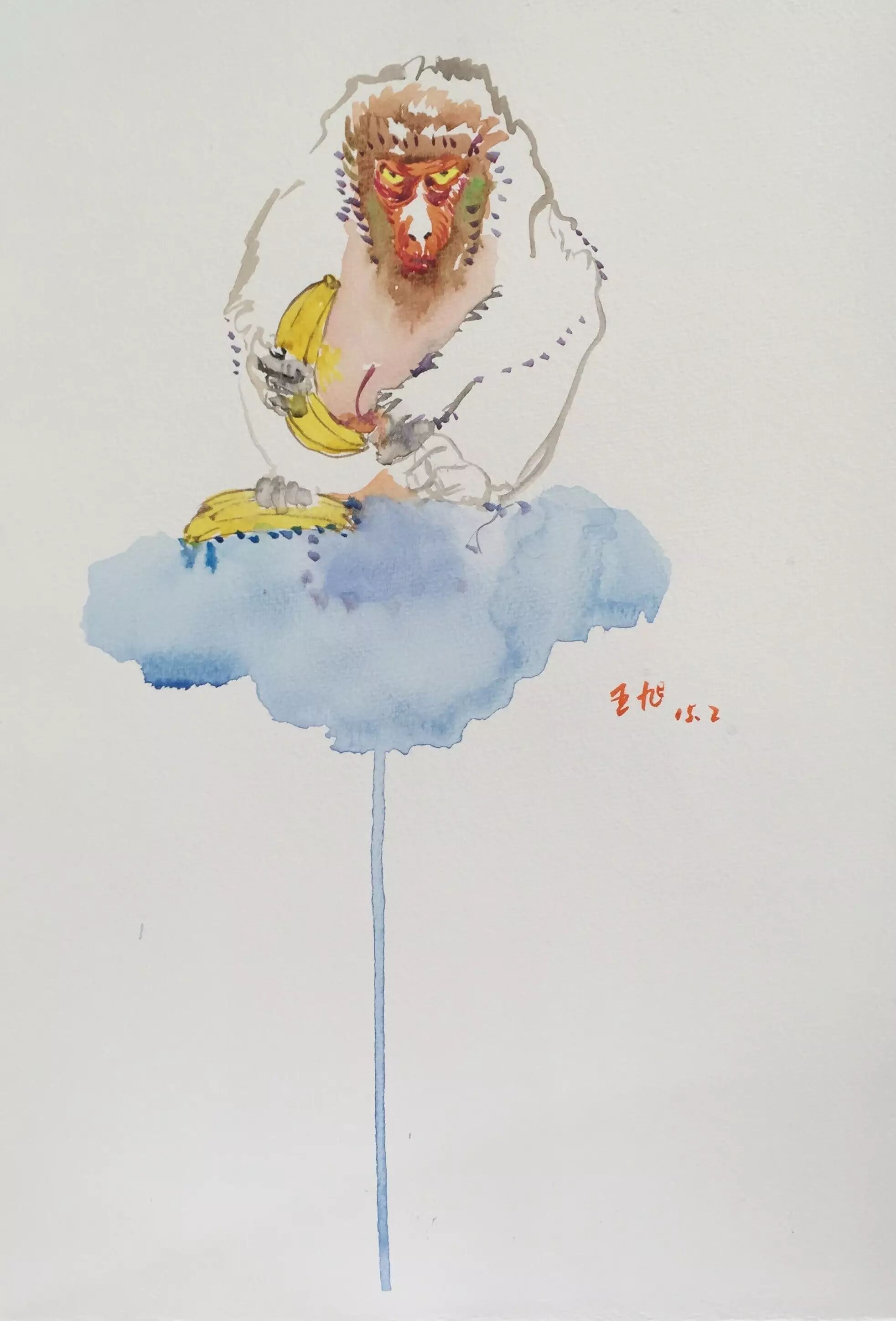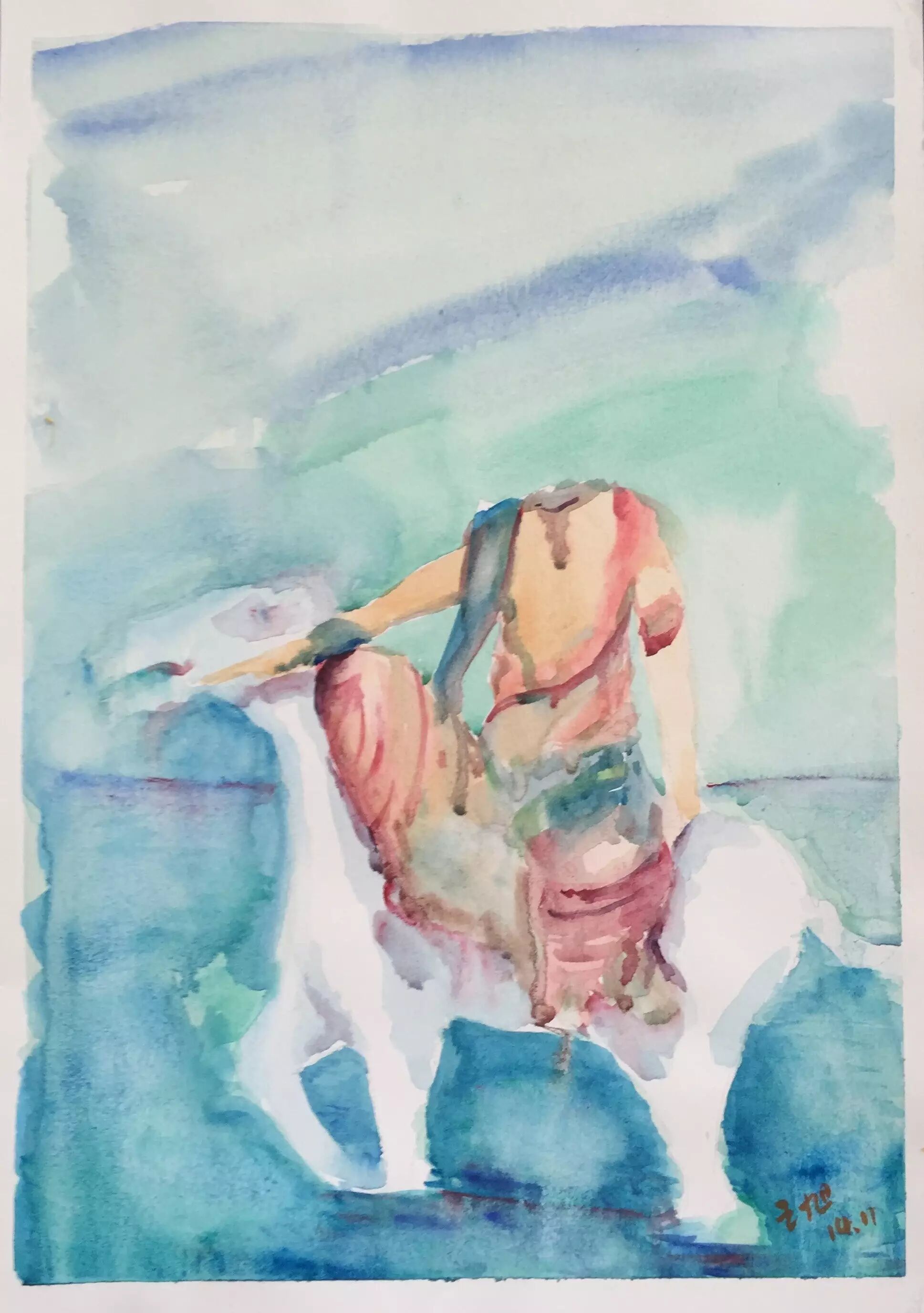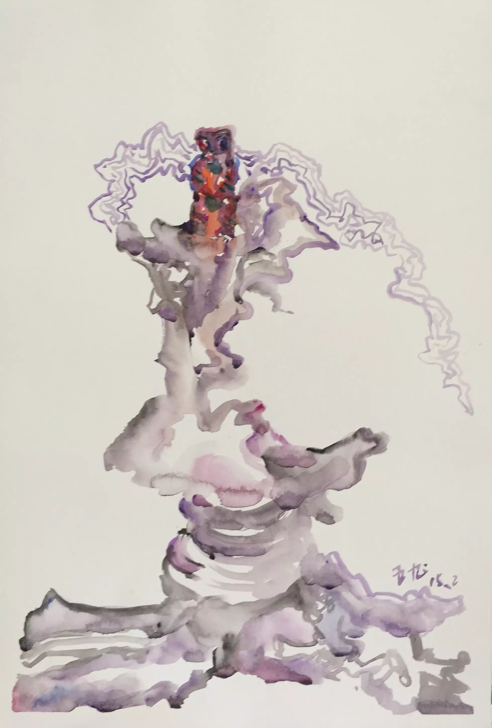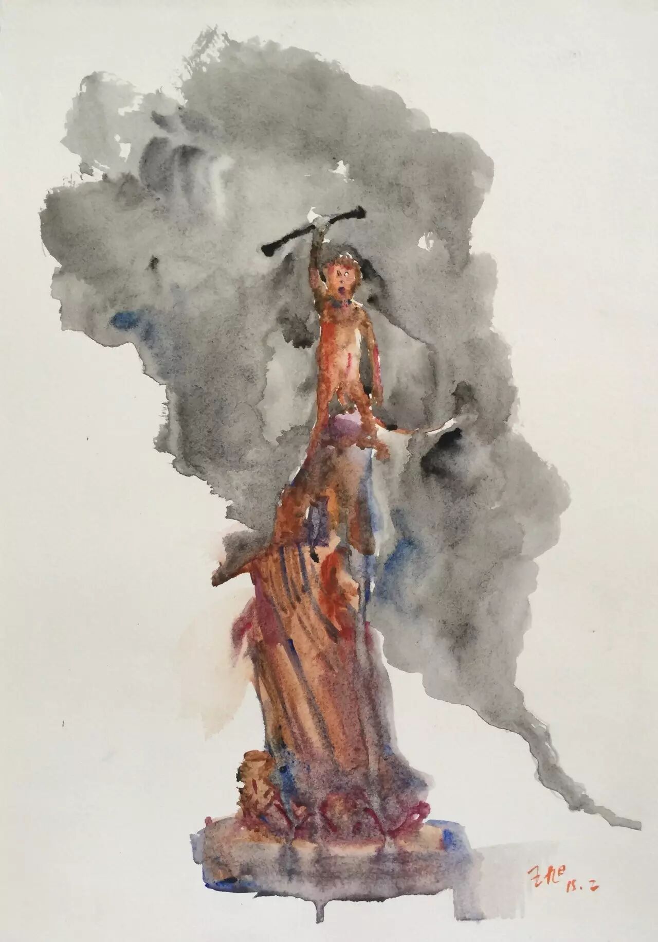 老去的王和他的云 纸本水彩 27X39CM 2015