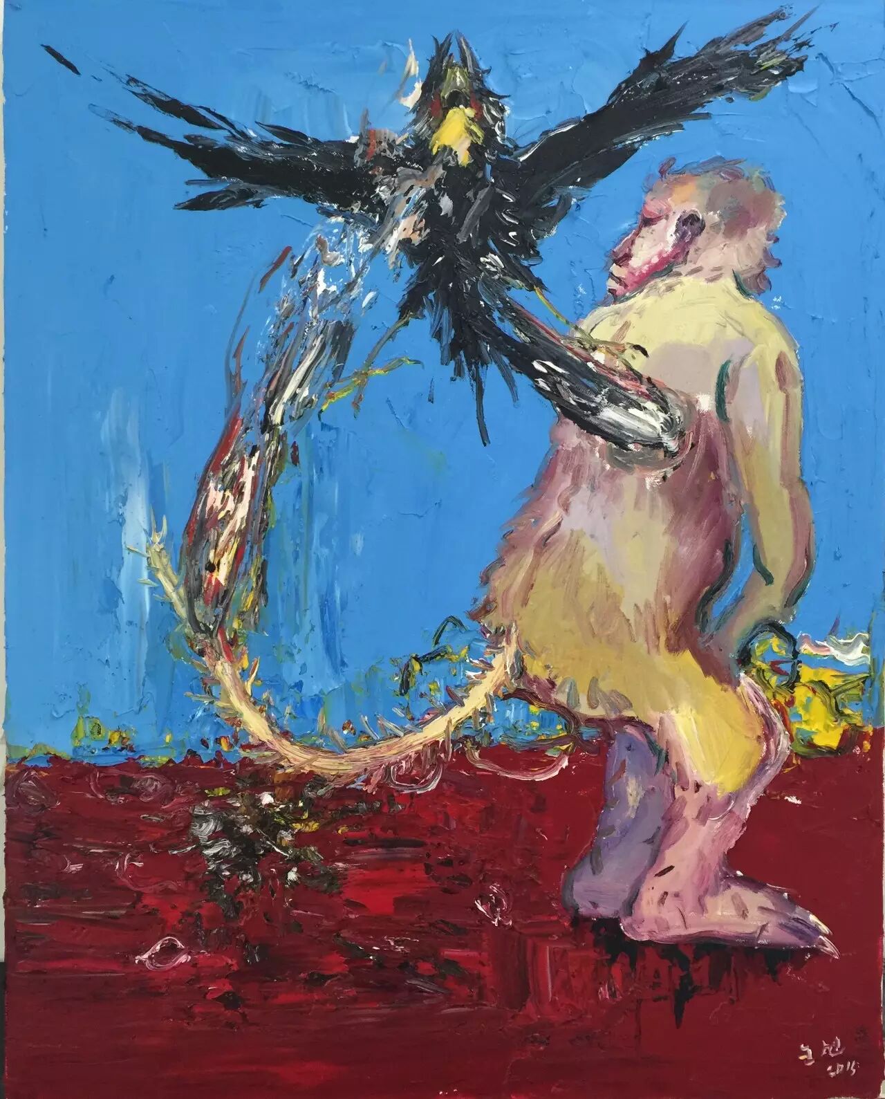 乌鸦从身体飞出你试图引燃冰冷的狼烟 布面油画 100x80cm 2015