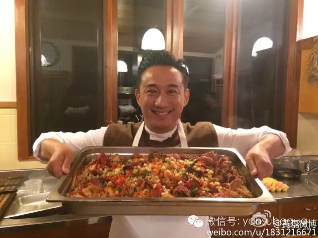 但陆毅跟黄磊比起来比较闷骚,不轻易秀厨艺的。翻遍陆毅微博只有晒过一次自己做的菜。