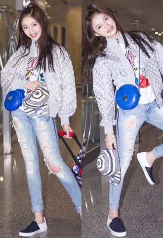 星女郎林允因出演星爷电影《美人鱼》女主,后又爆出与冯绍峰恋情,近来可谓是话题感及人气大增,这不最近受邀去巴黎时装周看秀。她现身北京机场,身穿Chanel 2016春夏银灰菱格纹外套,拖Chanel 2016春夏全新“coco case”印花拉杆箱,整身搭配青春有活力,一双美美的大长腿,真心好看呀!小编都被她机场俏皮的pose感染啦,难怪峰蜀黍会喜欢!