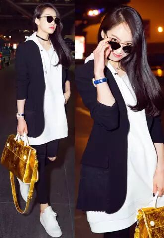 近日,宋茜身穿Dior 2016春夏系列黑色褶纹外套搭配全新金色Diorever手袋出发2016秋冬巴黎时装周。看来我们茜妞一到机场,就恢复了她时尚随性的韩范儿穿搭,一身黑白装扮现身机场,倒是显得清爽时髦不少!