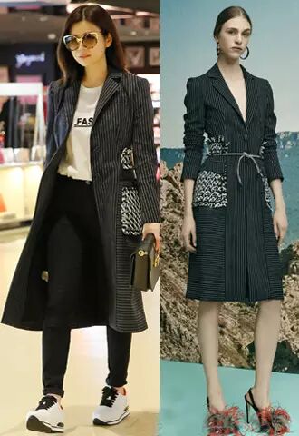 近日,陈妍希赴巴黎时装周,现身机场时身穿Altuzarra2016早春系列条纹风衣,内搭mo&co文字T恤,手拿lanvin包包,乍一看上去没什么特别的,跟发布秀场模特相比似乎差太多,麻豆穿得高跟鞋气场强太多了,不过陈妍希搭配牛仔和运动鞋更适合她啊呢,这种混搭风不失一种时髦舒适的合格机场造型呢!