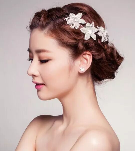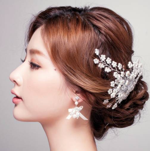发型三:把头发高高挽起,形成较大的花苞头,这一款韩式新娘发型看起来很简单,但却很有味道 ,特别是发间那如满天星星的发饰,起到点睛作用,美到让人移不开眼睛。