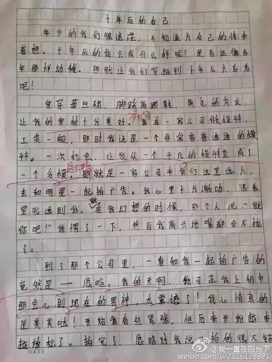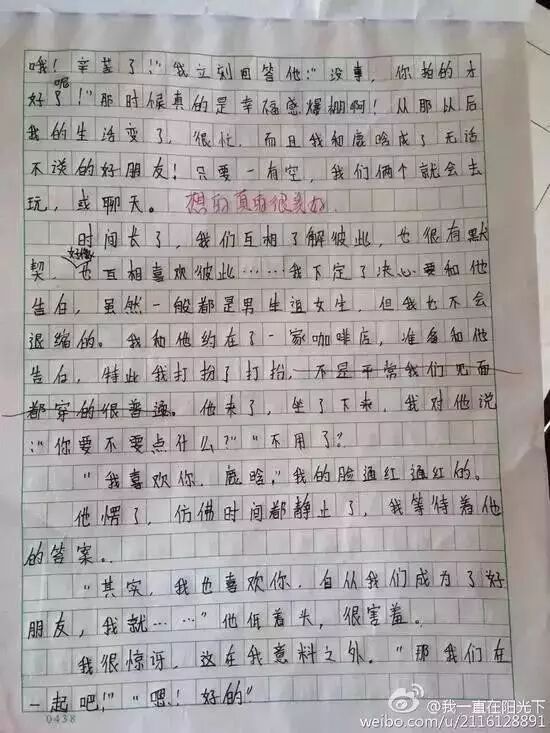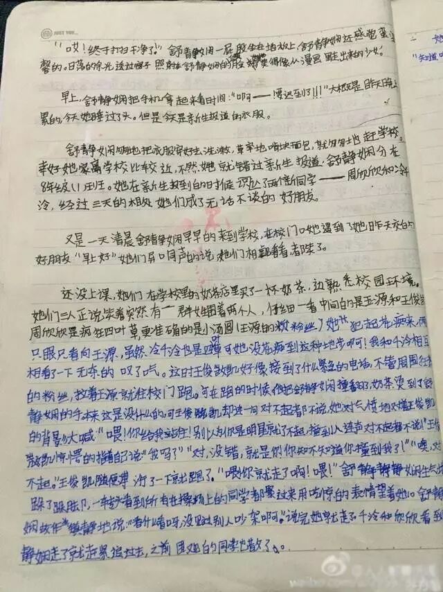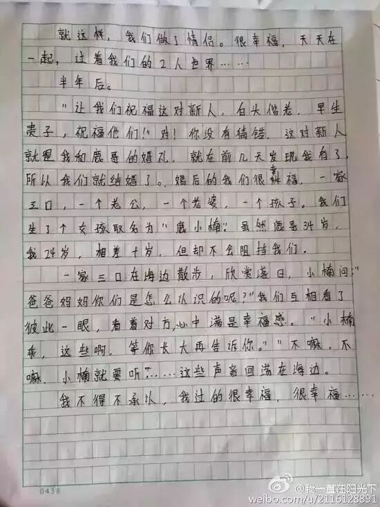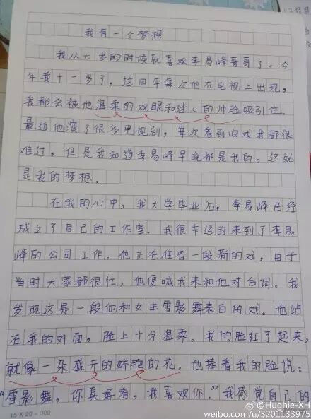 现在的小姑娘就不一样了。她们在脑海中幻想的,一定要表达出来,就连作文这种严肃的文体都无法成为她们的桎梏。