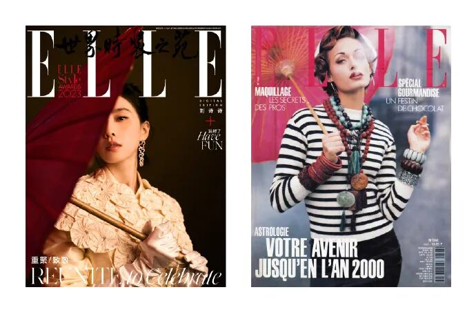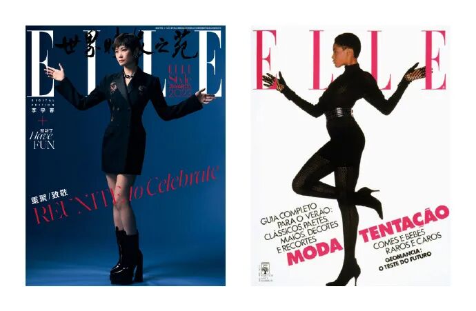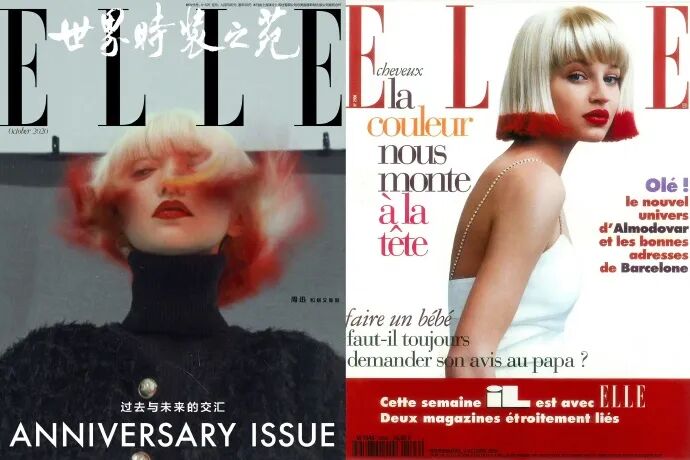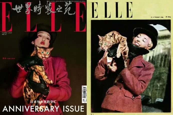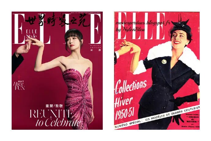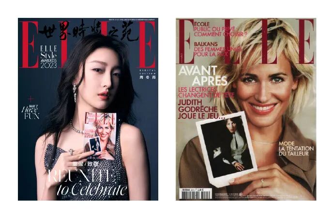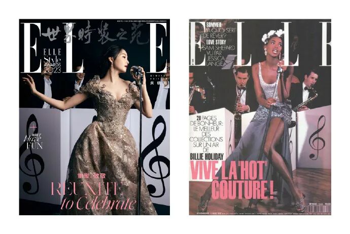 再举一个去年的例子。2023年,elle为庆祝创刊35周年,搞了一个蛮有意思的拍摄项目,邀请28位名人向elle全球的经典封面致敬。一些其他明星的致敬: