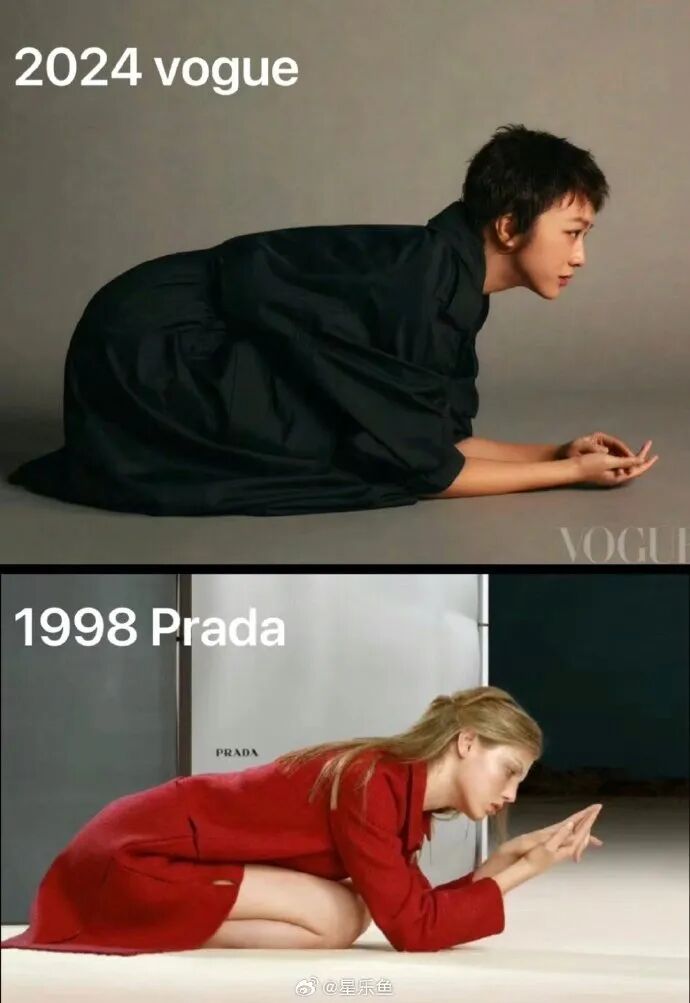 我愿称之为《关于汤唯被vogue拍成了一根板凳那件事》。可结果你猜怎么着,这也是他们时尚圈离大谱的一次致敬,或者说时尚圈诈骗女明星事件: