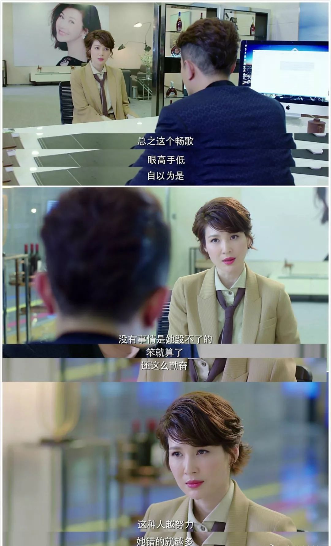 在和林永健搭档的《凡人的品格》里,她又化身为毒舌主持人方昕然。干练霸气,走路带风。