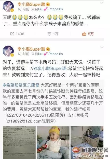 然而一个小时后,李小璐向该博主求问电话号码,以方便大家了解患病儿童的恢复情况,但对方再无回应,还删除了求助微博。李小璐随后恍然大悟,认为自己遭遇了骗子,爱心捐款可能落入了骗子之手。