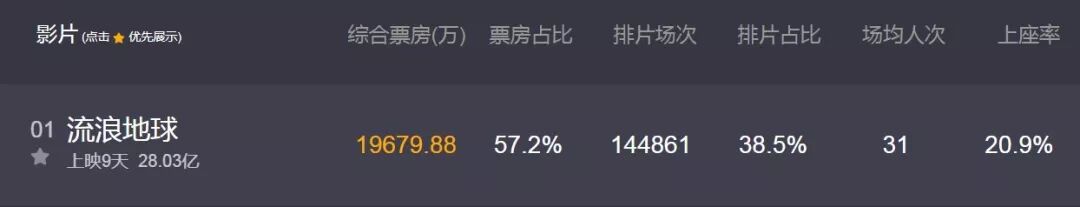 科幻电影巨制《流浪地球》截至到2月13日20:21