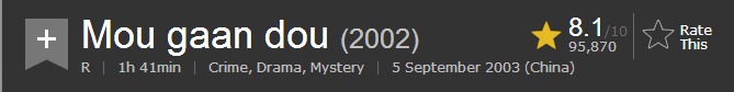 《无间道》在香港上映两周,票房就突破3000万港币。最终以5505万港币的票房成绩成为2002年香港电影年度票房冠军。