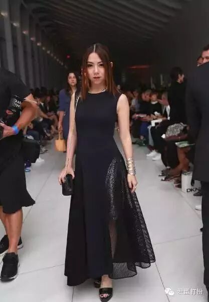 在DKNY专场秀上,邓紫棋身穿黑色长裙,穿着黑色的高跟鞋,走的是抑郁风,原本酷爱时尚的她打扮得难免让人有点小失望。