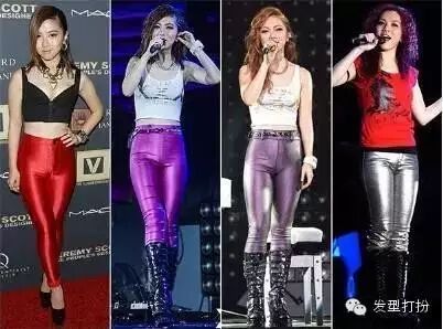 各种颜色的皮裤争奇斗艳,闪闪发光,把她原本的小粗腿暴露无疑,现在的发型再也不是先前的甜美风,现在的发型偏酷酷的野性,我想说邓紫棋的造型师是跟邓紫棋有仇吗?我们的女神去哪了?