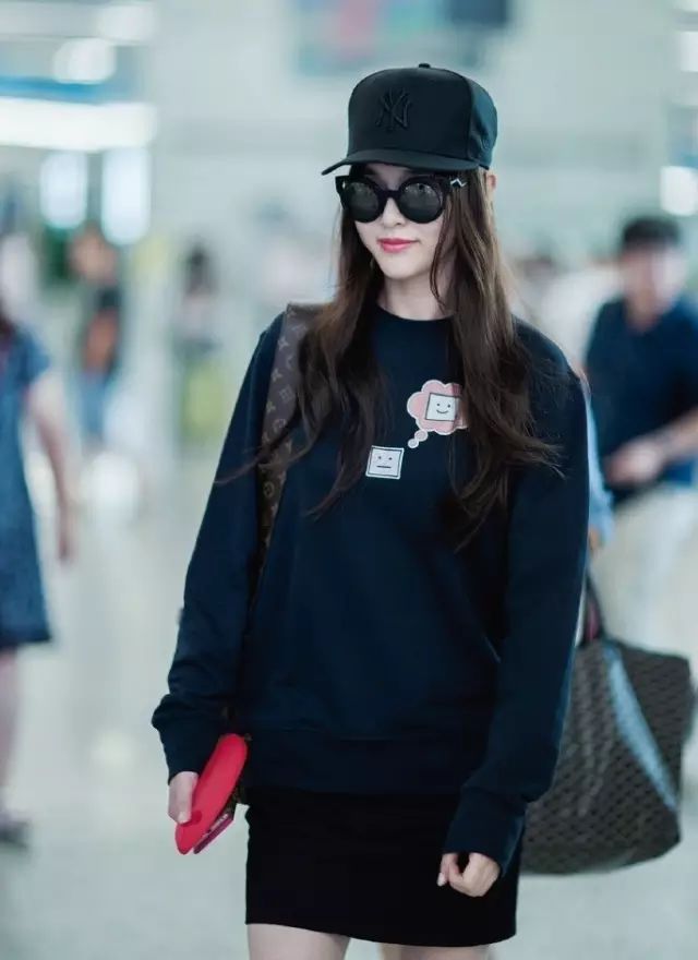 糖糖这身卫衣裙子,黑色和深蓝色搭配在一起,显白又酷。暗黑、甜美、少女、神秘……矛盾但真的很优雅。