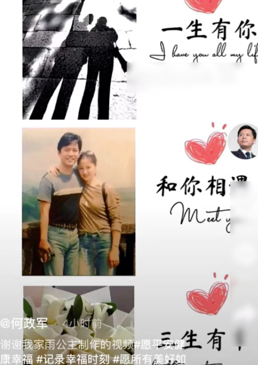 2021年,何政军公开秀恩爱,发出妻子和自己旅游时的合照。他在发文中,称呼自己的妻子为“雨公主”。